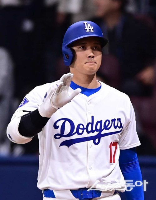 다저스는 고척돔 1루측에 위치한 키움 히어로즈의 ‘홈팀 라커룸’을 사용했다. 오타니는 기둥 바로 옆 라커에 자신의 유니폼과 신발 등을 가지런히 정리해놓았다.