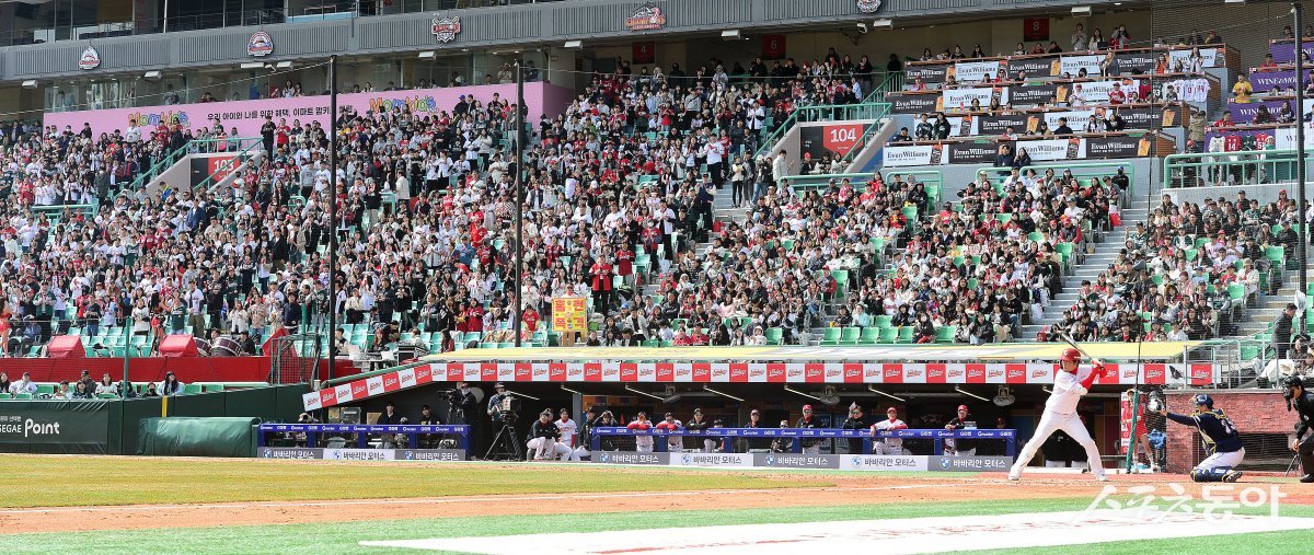 17일 인천 SSG 랜더스필드에서 ‘2024 신한 SOL 뱅크 KBO리그’ SSG 랜더스와 두산 베어스의 시범경기가 열렸다. SSG 야구팬들이 경기장을 찾아 응원을 펼치고 있다.