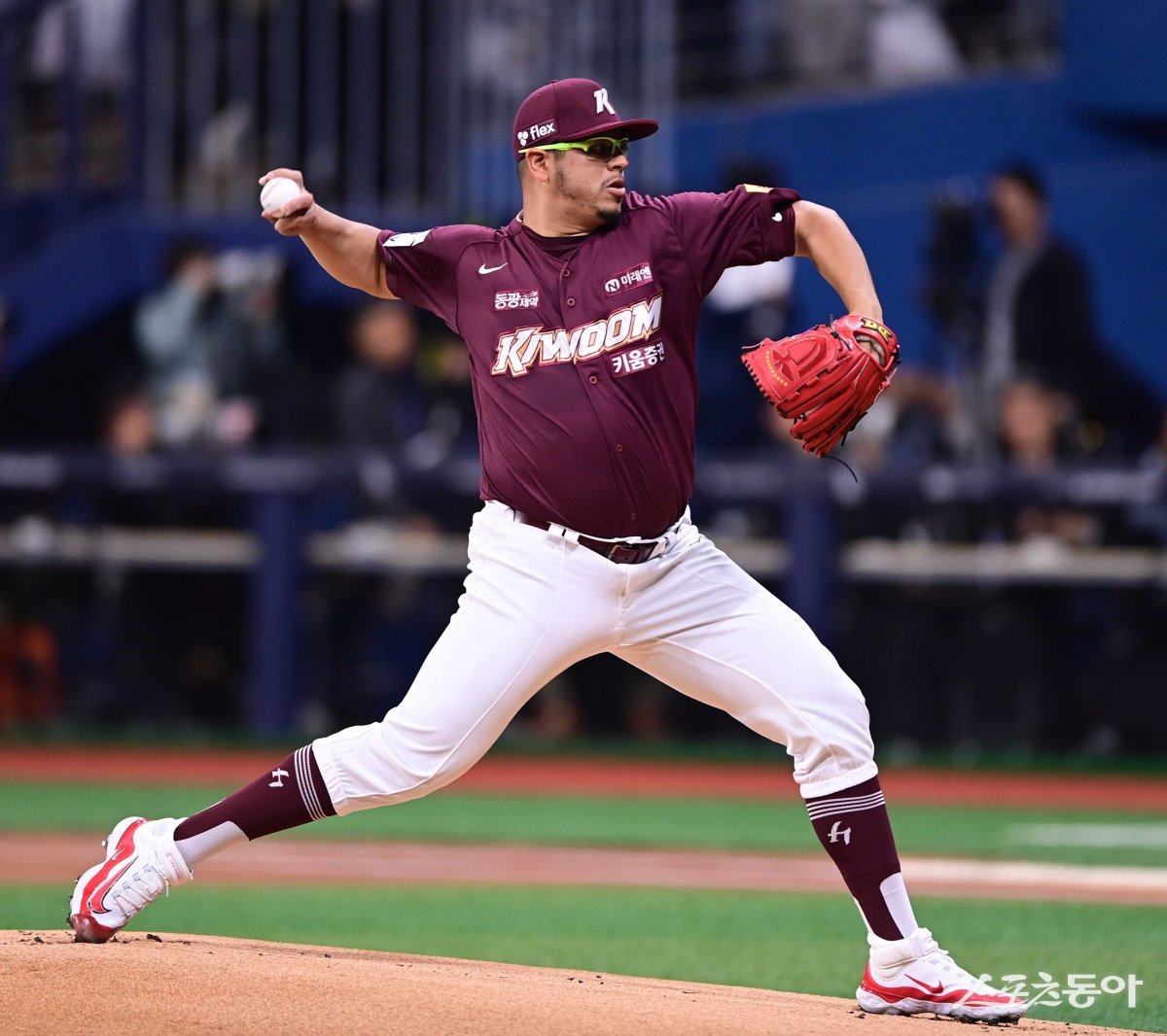 17일 서울 고척스카이돔에서 열린 ‘메이저리그 월드투어 서울시리즈 2024’ 스페셜 매치 키움 히어로즈와 LA 다저스의 경기에서 선발 투수로 마운드에 오른 키움 후라도가 역투하고 있다.