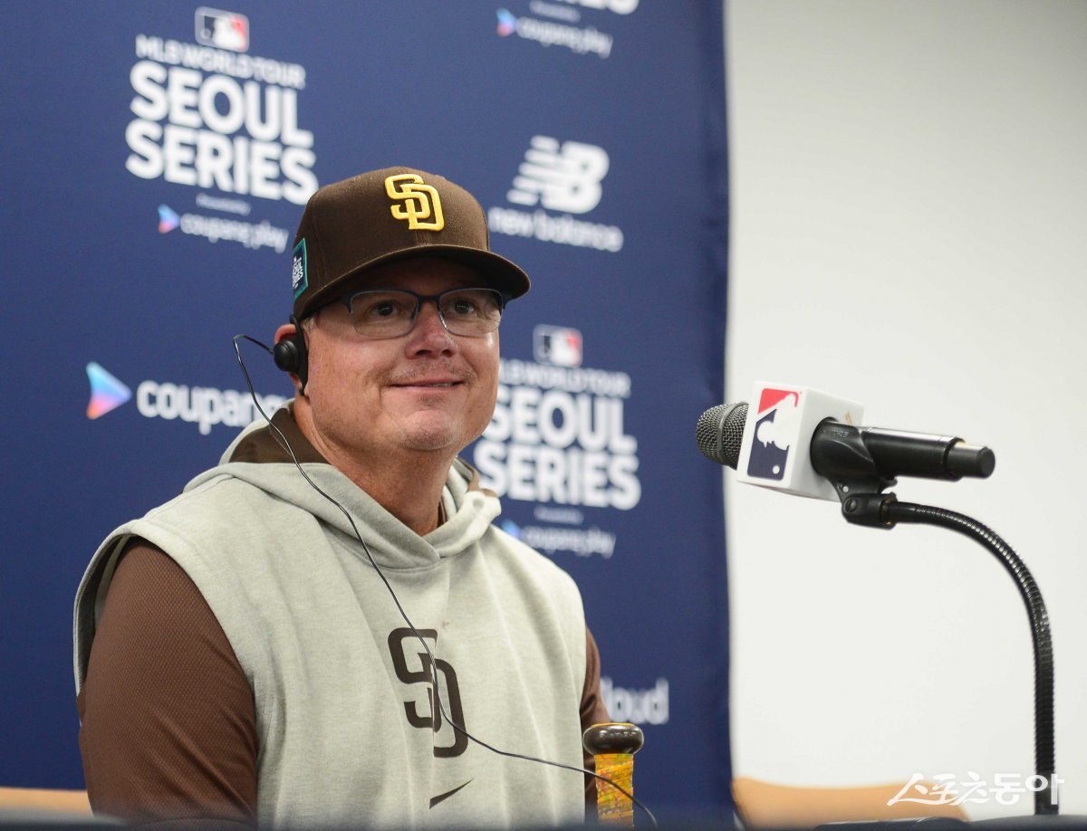 17일 서울 고척스카이돔에서 열린 ‘메이저리그 월드투어 서울시리즈 2024’ 스페셜 매치 팀 코리아와 샌디에이고 파드리스의 경기에 앞서 샌디에이고 마이크 실트 감독이 인터뷰를 하고 있다.
