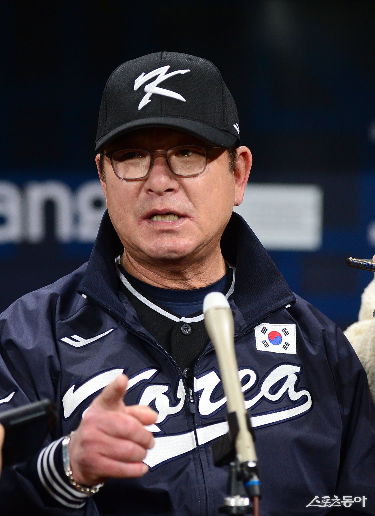 17일 서울 고척스카이돔에서 ‘메이저리그 월드투어 서울시리즈 2024’ 스페셜 매치 팀 코리아와 샌디에이고 파드리스의 경기에 열린다. 경기 전 팀 코리아 류중일 감독이 인터뷰를 하고 있다.