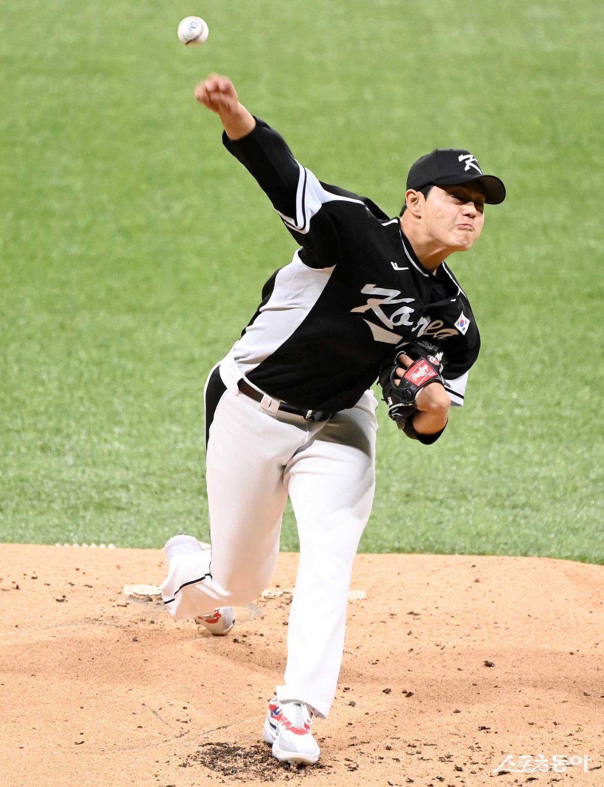 17일 서울 고척스카이돔에서 열린 ‘메이저리그 월드투어 서울시리즈 2024’ 스페셜 매치 팀 코리아와 샌디에이고 파드리스의 경기에서 선발 투수로 마운드에 오른 팀 코리아 문동주가 역투하고 있다.