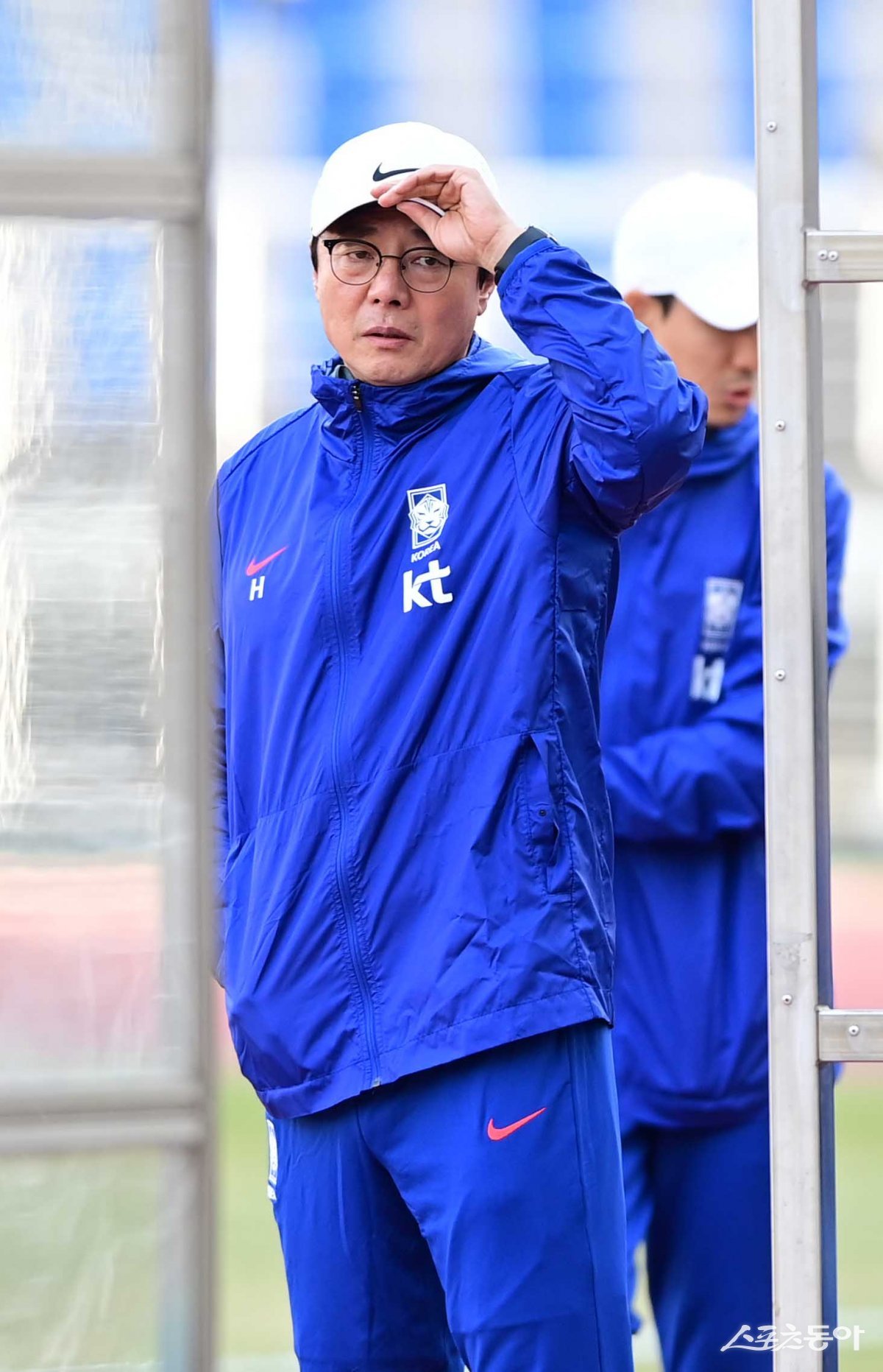 한국축구대표팀이 18일 경기도 고양종합운동장에서 ‘2026 FIFA 북중미 월드컵’ 아시아지역 2차 예선전을 앞두고 소집 훈련을 갖었다. 한국 황선홍 감독이 선수들의 훈련을 지켜보고 있다.