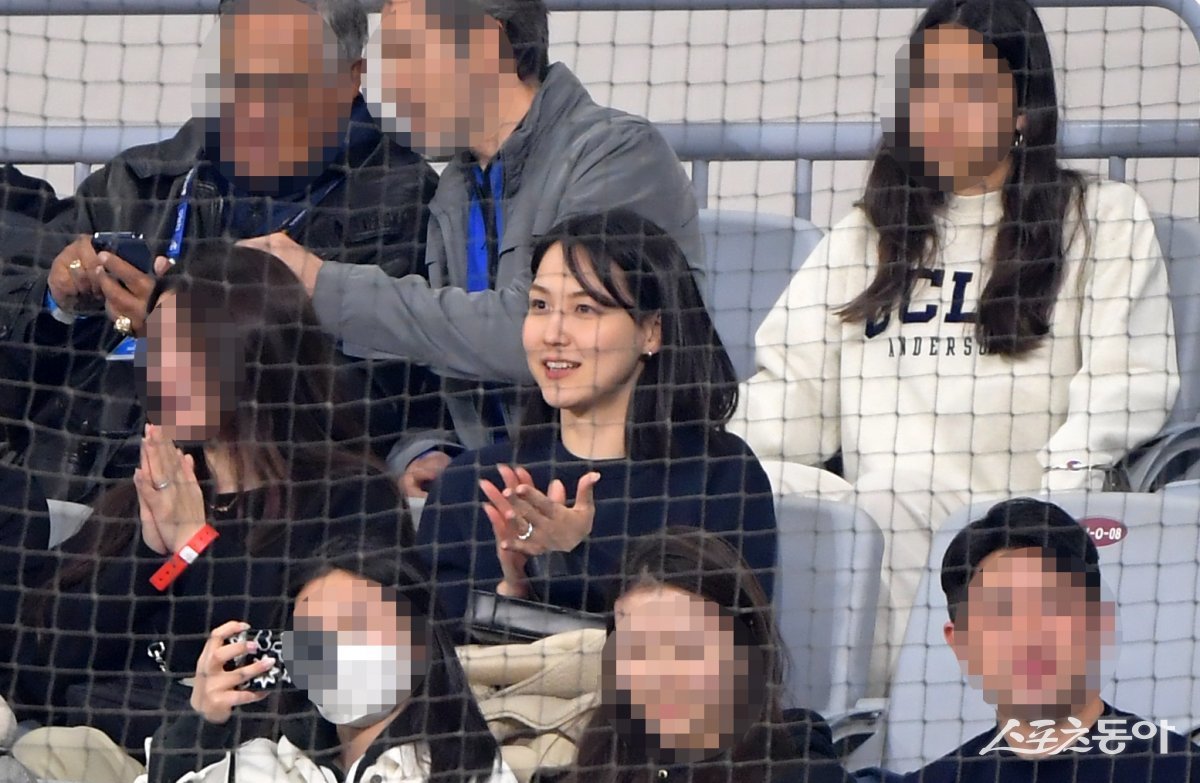 18일 서울 고척스카이돔에서 ‘메이저리그 월드투어 서울시리즈 2024’ 스페셜 매치 팀 코리아와 LA 다저스 경기가 열렸다. LA 다저스 오타니의 아내 다나카 마미코가 남편의 경기를 지켜보고 있다.