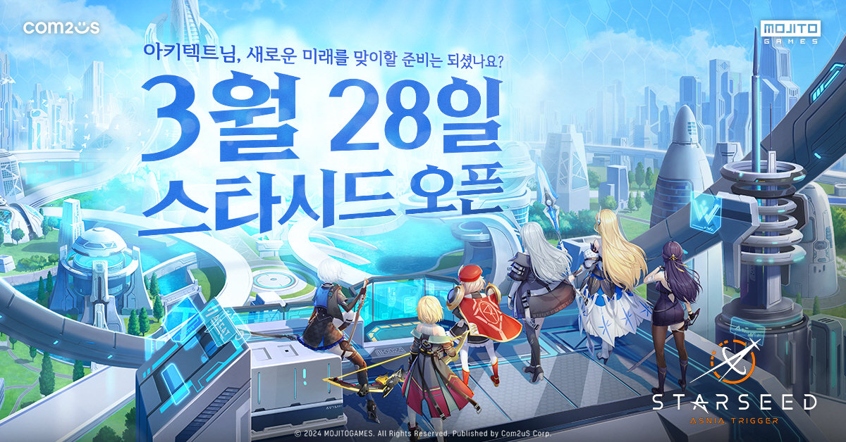 컴투스는 ‘스타시드: 아스니아 트리거’를 28일 국내 출시한다. 조이시티 자회사 모히또게임즈가 개발하고 컴투스가 글로벌 서비스할 예정인 인공지능(AI) 육성 어반 판타지 역할수행게임(RPG)이다. 위기에 처한 인류를 구하기 위해 플레이어가 가상세계로 뛰어들어 AI 소녀인 프록시안들과 함께 힘을 모아 싸우는 세계관을 배경으로 한다. 사전 예약자 수 100만 명을 돌파하며 기대를 모으고 있다. 한지훈 컴투스 게임사업부문장은 “현재 완성도를 끌어올리는 막바지 작업에 돌입했으며, 성공적인 서비스를 위해 최선을 다해 준비하고 있다”고 말했다.