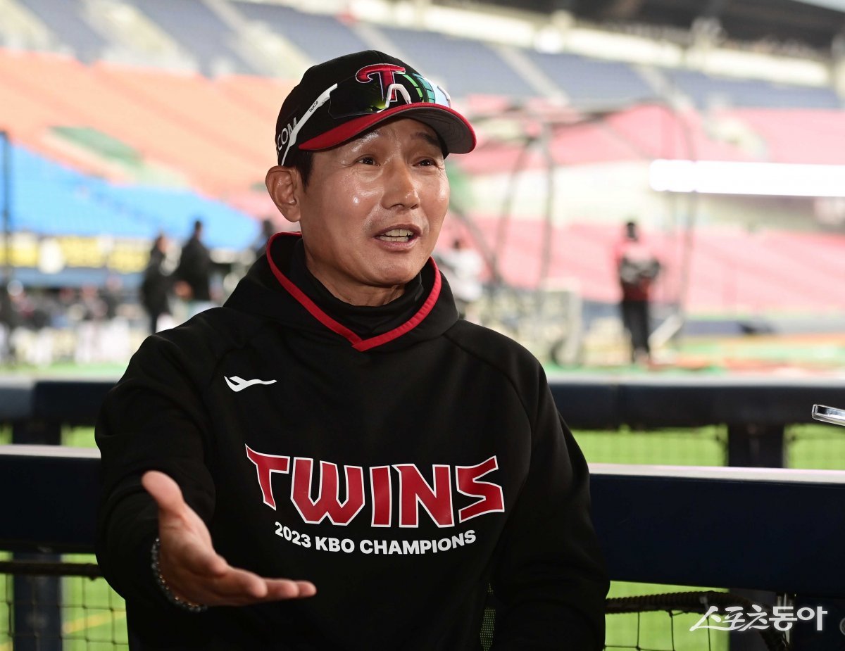 19일 서울 잠실야구장에서 열린 ‘2024 신한 SOL 뱅크 KBO리그’ LG 트윈스와 키움 히어로즈의 시범경기에 앞서 LG 염경엽 감독이 취재진과 인터뷰를 하고 있다.