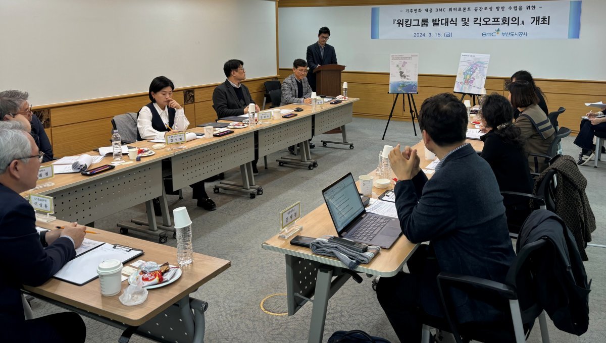 부산도시공사(사장 김용학)가 기후변화 대응 BMC 워터프론트 공간조성 방안 수립을 위한 전문가 ‘워킹그룹 발대식 및 킥오프 회의’를 개최했다고 19일 밝혔다.조경·도시계획·건축 등 외부전문가 7명 구성