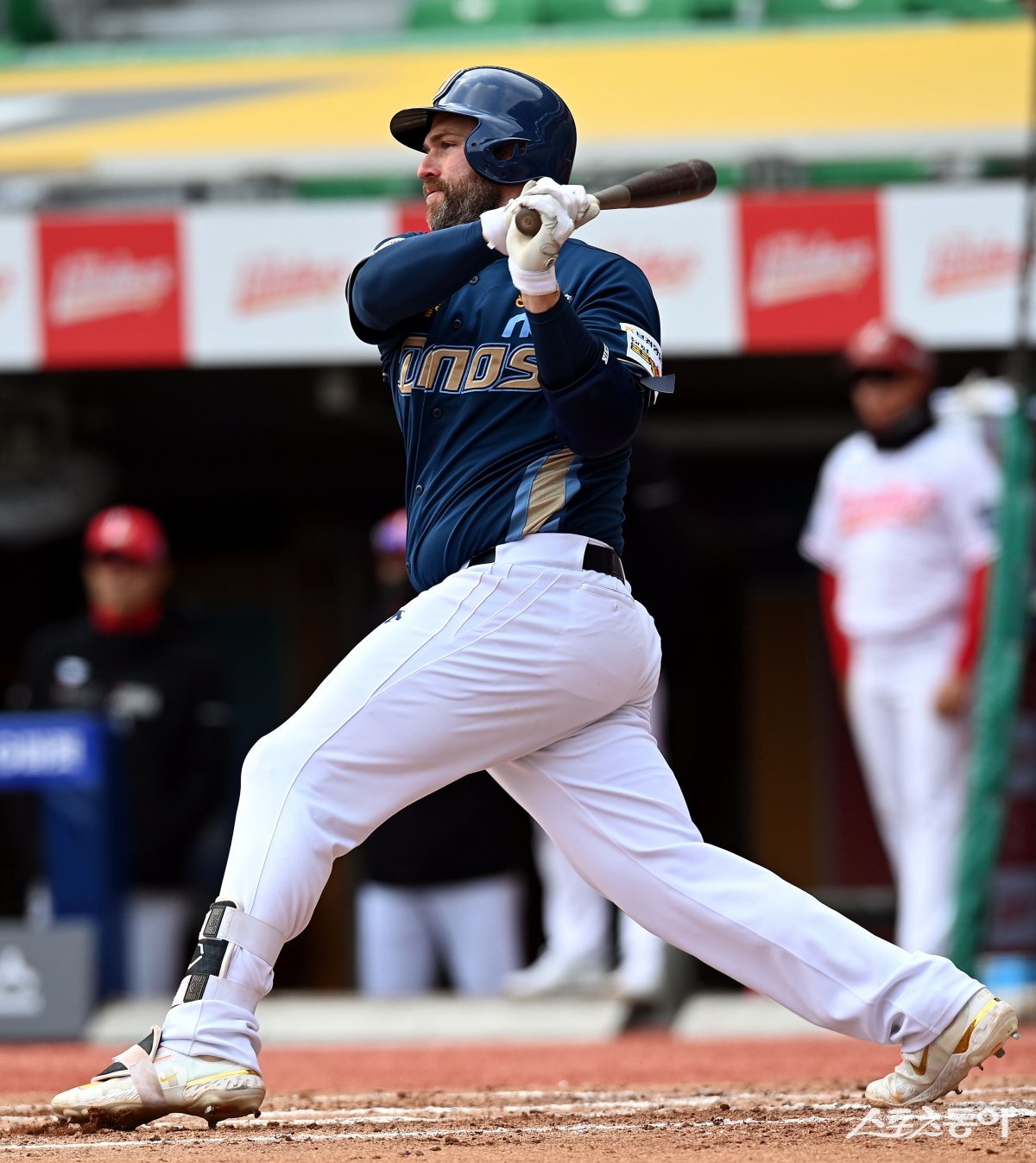 19일 인천 SSG 랜더스필드에서 ‘2024 신한 SOL 뱅크 KBO리그’ SSG 랜더스와 NC 다이노스의 시범경기가 열렸다. 7회초 1사 1, 3루에서 NC 데이비슨이 1타점 적시타를 날리고 있다.