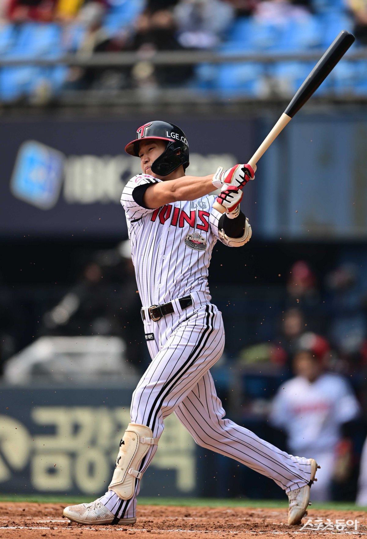 19일 서울 잠실야구장에서 열린 ‘2024 신한 SOL 뱅크 KBO리그’ LG 트윈스와 키움 히어로즈의 시범경기에서 3회말 1사 1, 2루 LG 구본혁이 1타점 적시타를 치고 있다. 잠실 | 주현희 기자 teth1147@donga.com