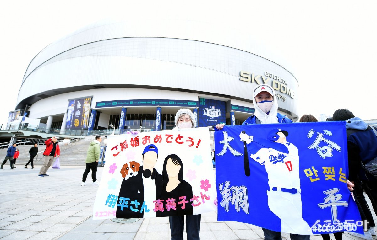 20일 서울 고척스카이돔에서 ‘메이저리그 월드투어 서울시리즈 2024’ LA 다저스와 SD 파드리스 열렸다. 오타니 팬들이 입장을 기다리고 있다.