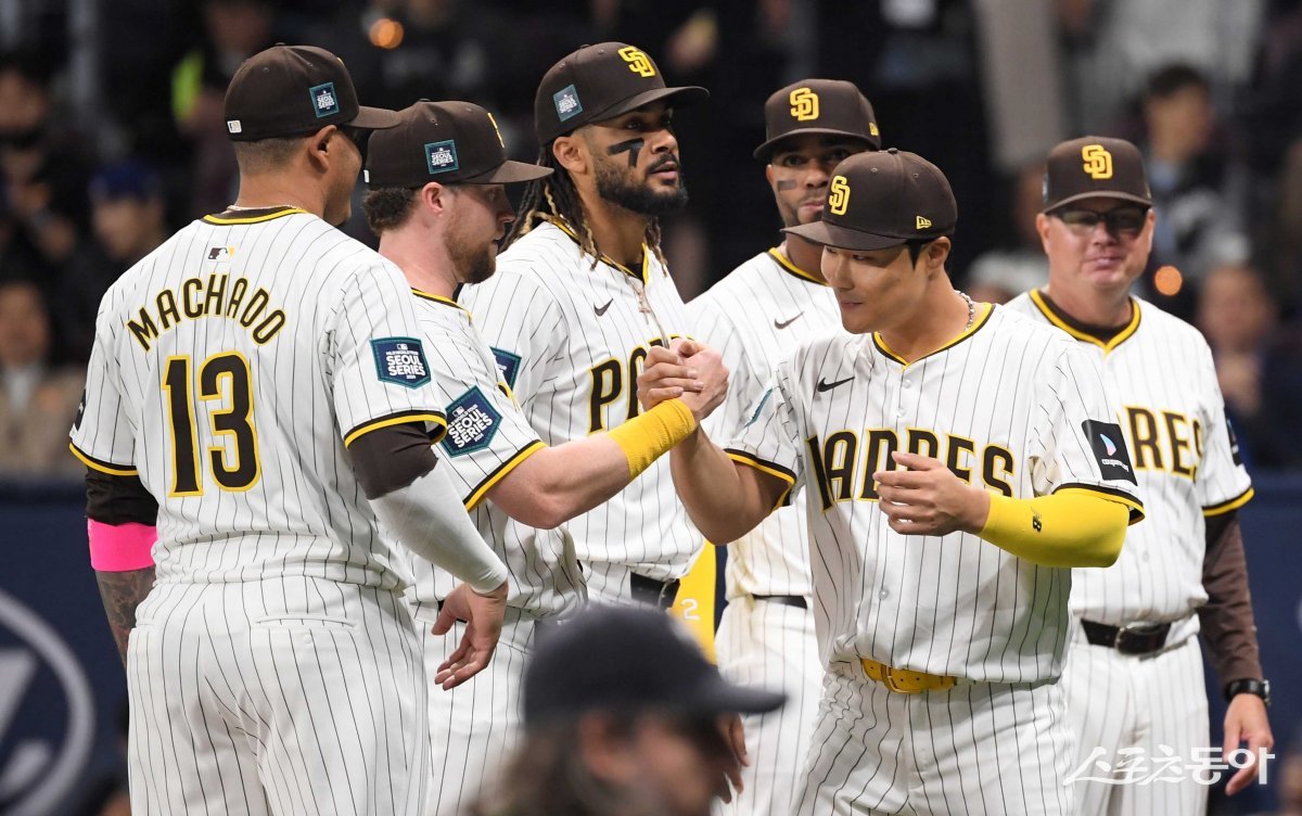 20일 서울 고척스카이돔에서 열린 ‘메이저리그 월드투어 서울시리즈 2024’ LA 다저스와 샌디에이고 파드리스의 개막 경기에 앞서 샌디에이고 김하성이 그라운드에 들어서고 있다.