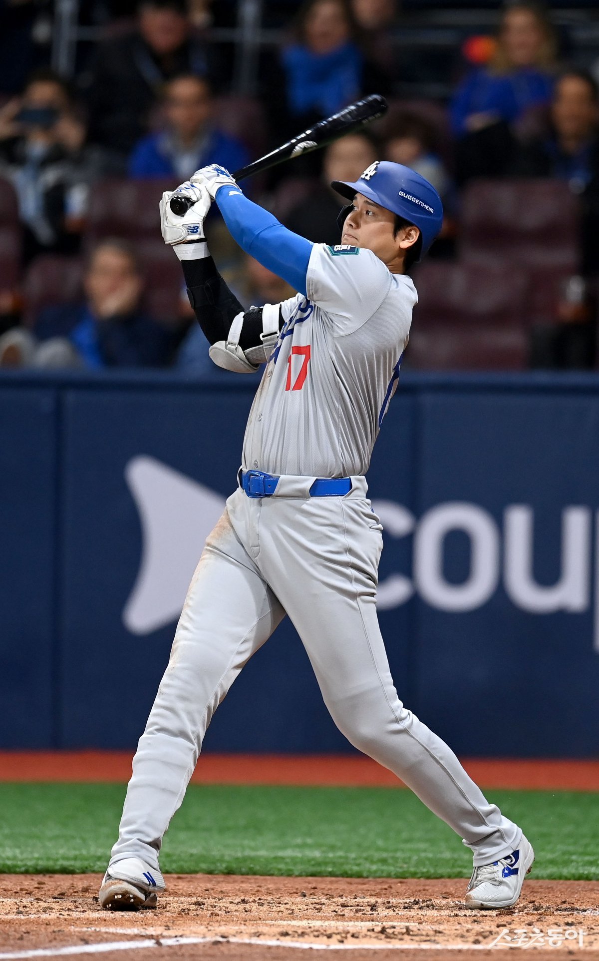 20일 서울 고척스카이돔에서 ‘메이저리그 월드투어 서울시리즈 2024’ LA 다저스와 SD 파드리스 열렸다. 3회초 2사 LA 다저스 오타니가 우전 안타를 치고 있다.