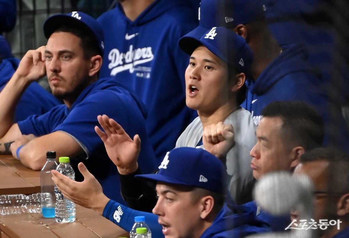 20일 서울 고척스카이돔에서 열린 ‘메이저리그 월드투어 서울시리즈 2024’ LA 다저스와 샌디에이고 파드리스의 개막 경기에서 9회말 LA 오타니가 경기를 지켜보고 있다. 고척 | 김종원 기자 won@donga.com