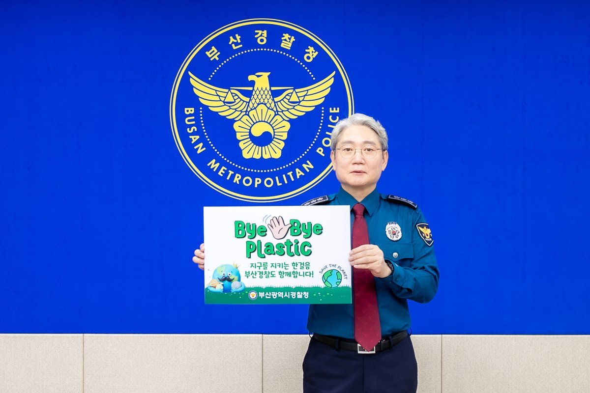 우철문 부산경찰청장이 ‘바이바이 플라스틱 챌린지’에 동참했다.다음 주자로 정영학 부산지방검찰청 검사장 등 추천