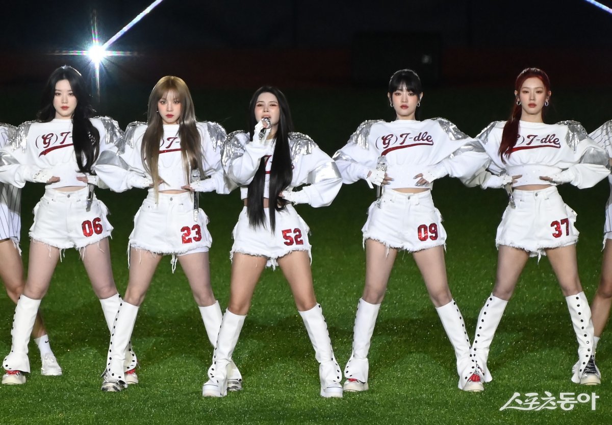 21일 서울 고척스카이돔에서 ‘메이저리그 월드투어 서울시리즈 2024’ SD 파드리스와 LA 다저스 열렸다. 경기 전 그룹 여자아이들이 축하공연을 하고 있다.