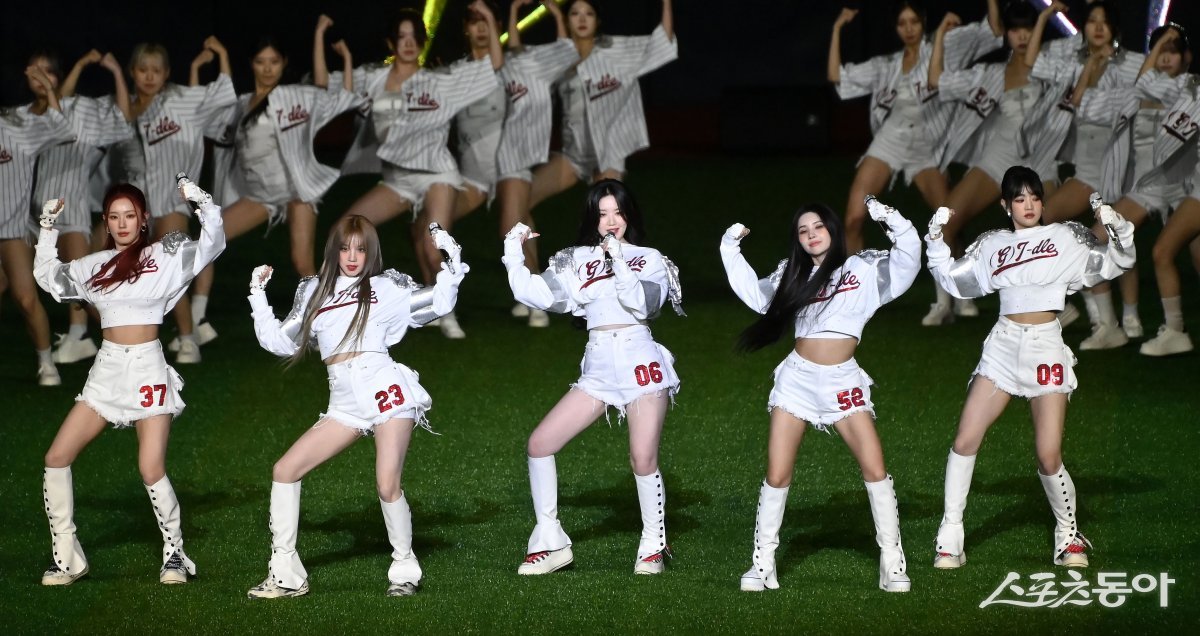 21일 서울 고척스카이돔에서 ‘메이저리그 월드투어 서울시리즈 2024’ SD 파드리스와 LA 다저스 열렸다. 경기 전 그룹 여자아이들이 축하공연을 하고 있다.
