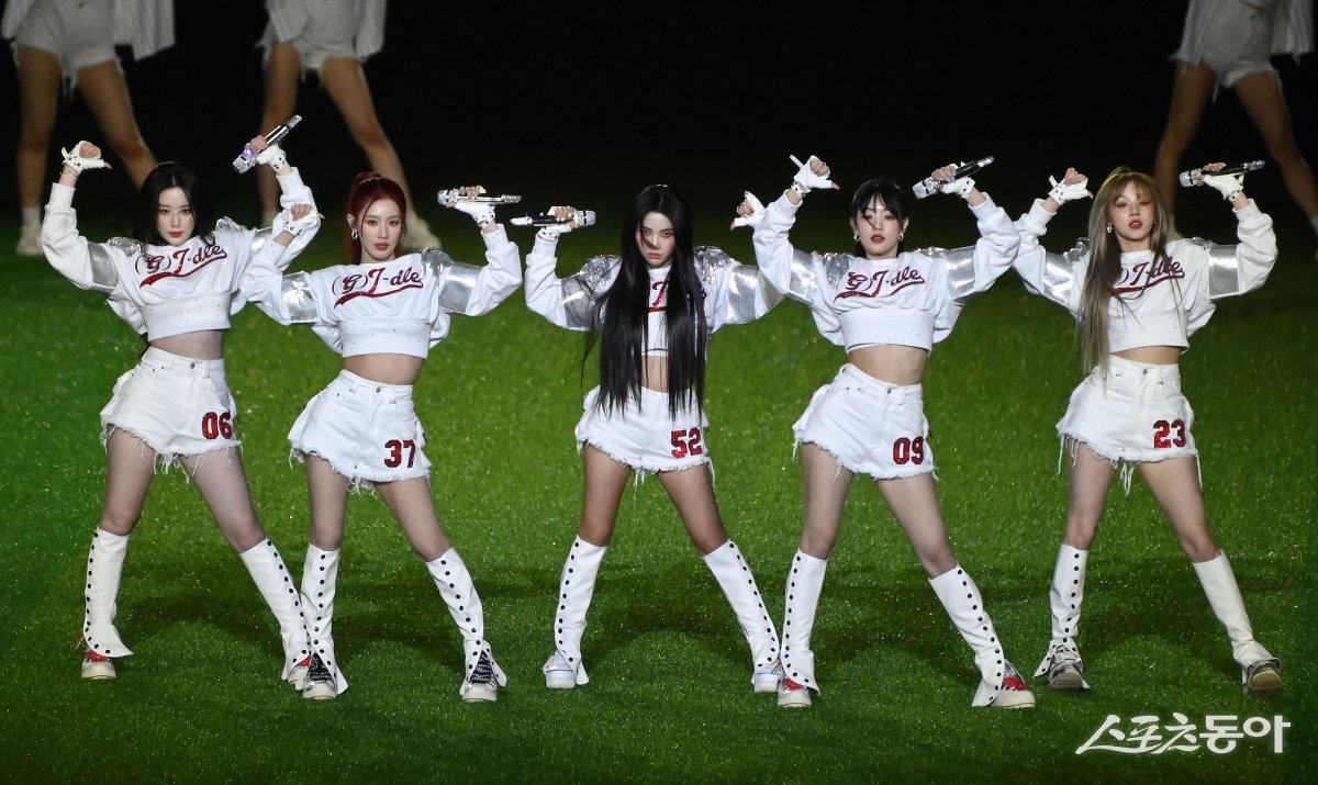 21일 서울 고척스카이돔에서 ‘메이저리그 월드투어 서울시리즈 2024’ SD 파드리스와 LA 다저스 열렸다. 경기 전 그룹 여자아이들이 축하공연을 하고 있다.