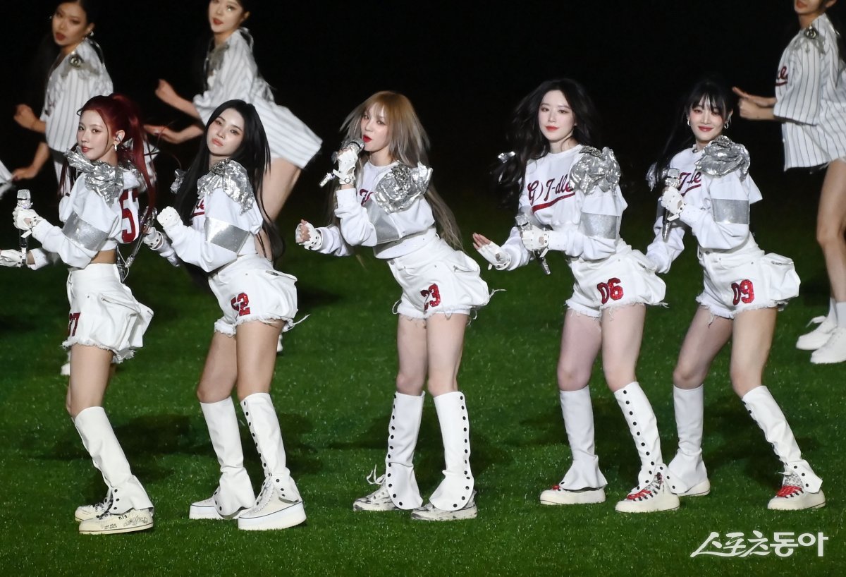 21일 서울 고척스카이돔에서 ‘메이저리그 월드투어 서울시리즈 2024’ SD 파드리스와 LA 다저스 열렸다. 경기 전 그룹 여자아이들이 축하공연을 하고 있다.