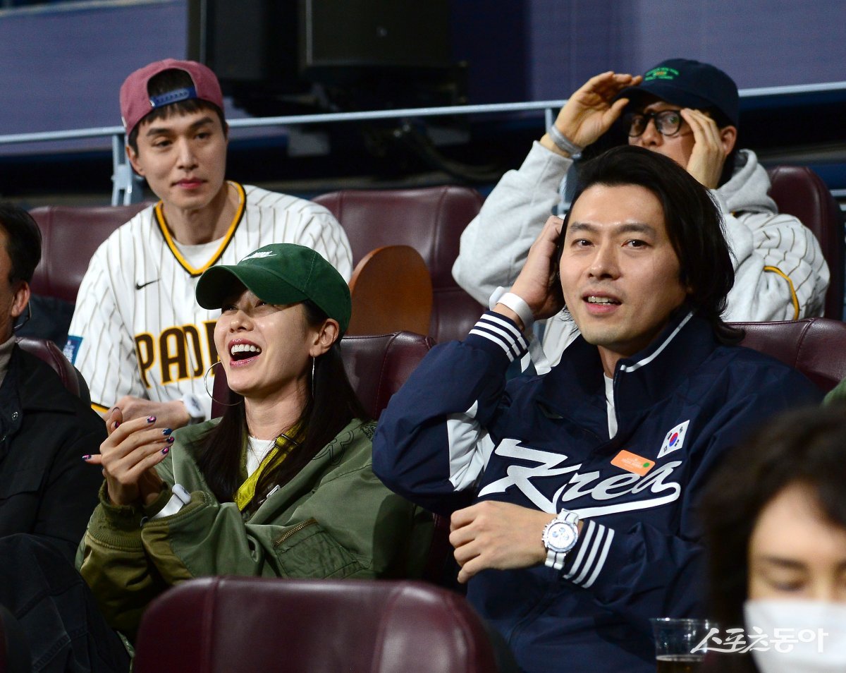 21일 서울 고척스카이돔에서 ‘메이저리그 월드투어 서울시리즈 2024’ SD 파드리스와 LA 다저스 열렸다. 배우 손예진, 현빈 부부와 이동욱, 공유가 경기를 관전하고 있다.