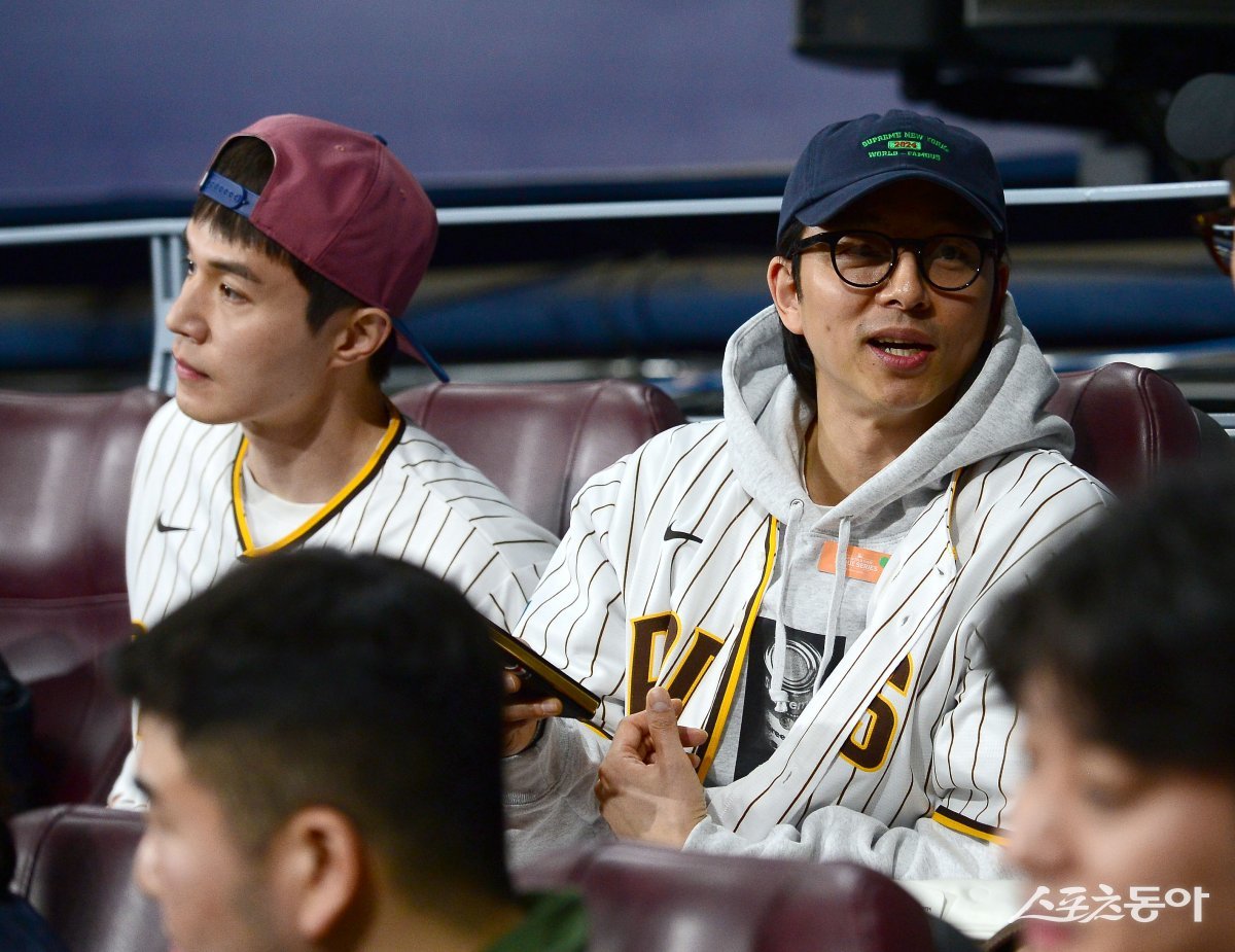 21일 서울 고척스카이돔에서 ‘메이저리그 월드투어 서울시리즈 2024’ SD 파드리스와 LA 다저스 열렸다. 배우 이동욱과 공유가 경기를 관전하고 있다.