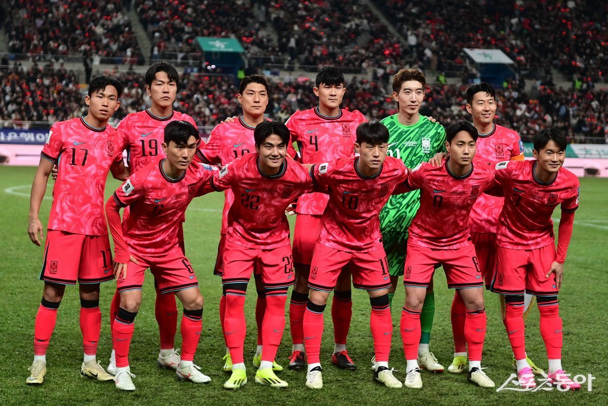 21일 서울월드컵경기장에서 열린 ‘2026 FIFA 북중미 월드컵’ 아시아지역 2차 예선전 한국과 태국의 경기에 앞서 베스트 일레븐 선수들이 기념 촬영을 하고 있다.