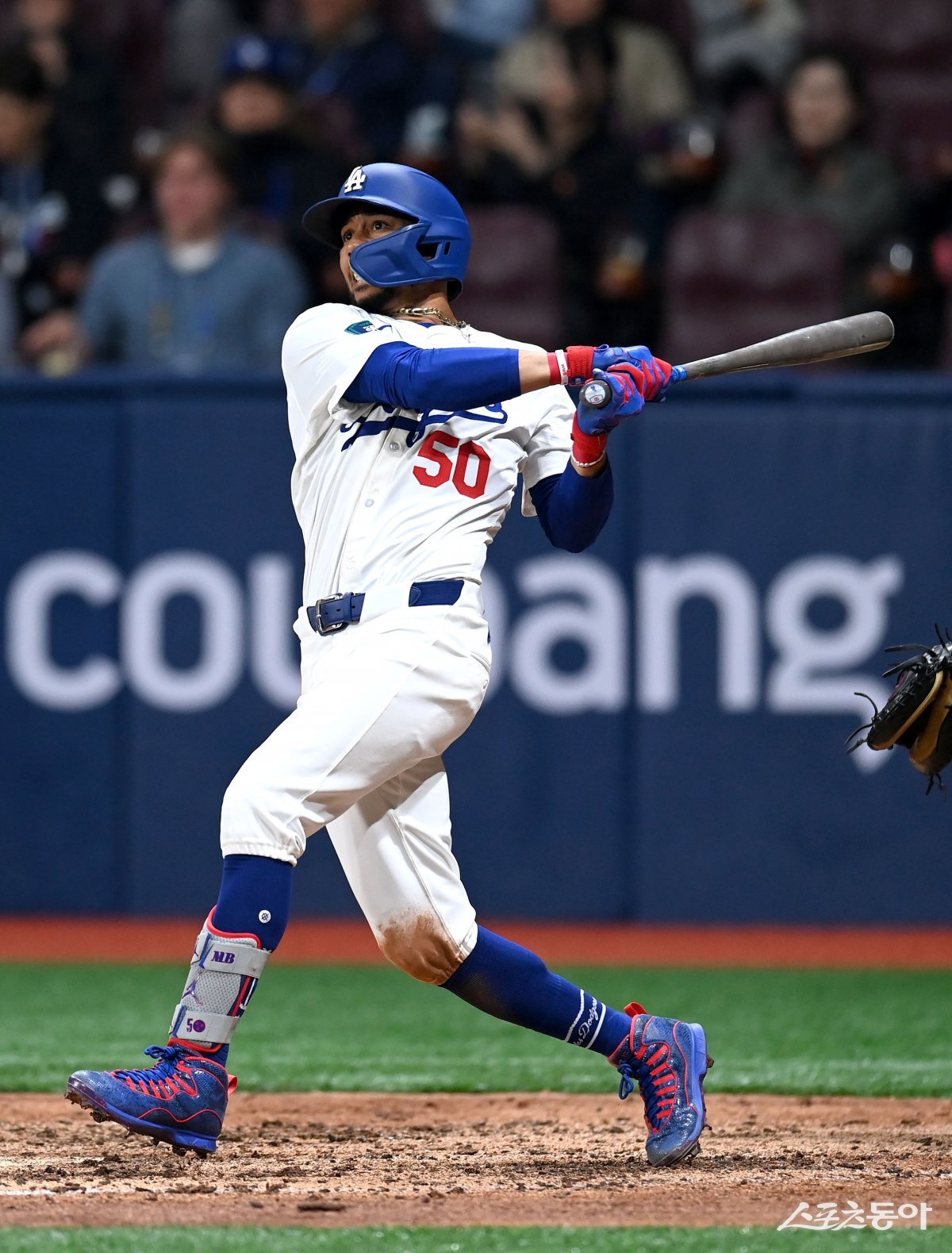 21일 서울 고척스카이돔에서 ‘메이저리그 월드투어 서울시리즈 2024’ SD 파드리스와 LA 다저스 열렸다. 3회말 2사 1,2루 LA 다저스 베츠가 2타점 좌전 2루타를 치고 있다.