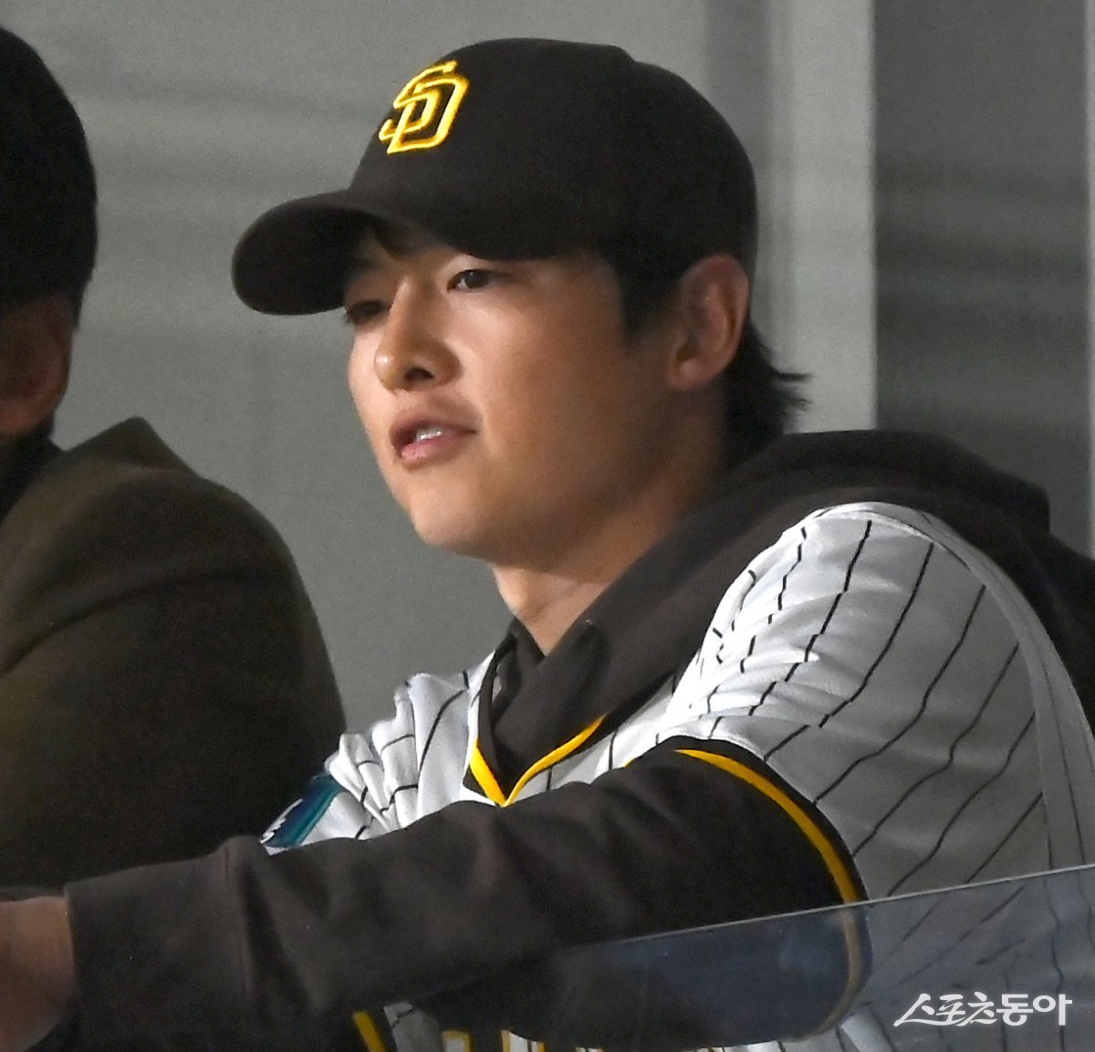 21일 서울 고척스카이돔에서 ‘메이저리그 월드투어 서울시리즈 2024’ SD 파드리스와 LA 다저스 열렸다. 배우 송중기가 관전을 하고 있다.