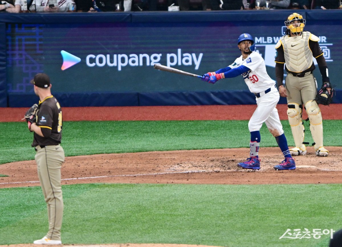 21일 서울 고척스카이돔에서 ‘메이저리그 월드투어 서울시리즈 2024’ SD 파드리스와 LA 다저스 열렸다. 5회말 1사 1루 다저스 베츠가 좌월 투런 홈런을 날리고 있다.