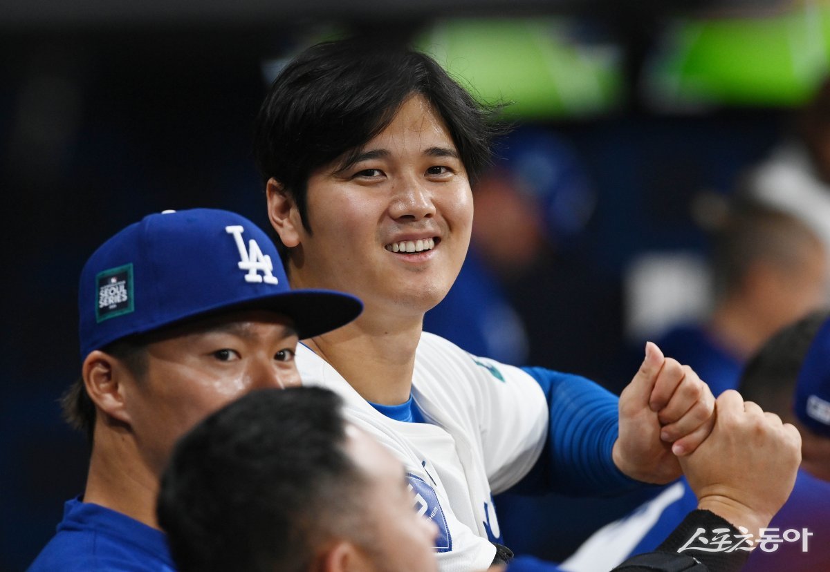 21일 서울 고척스카이돔에서 ‘메이저리그 월드투어 서울시리즈 2024’ SD 파드리스와 LA 다저스 열렸다. 다저스 오타니가 밝게 웃고 있다.