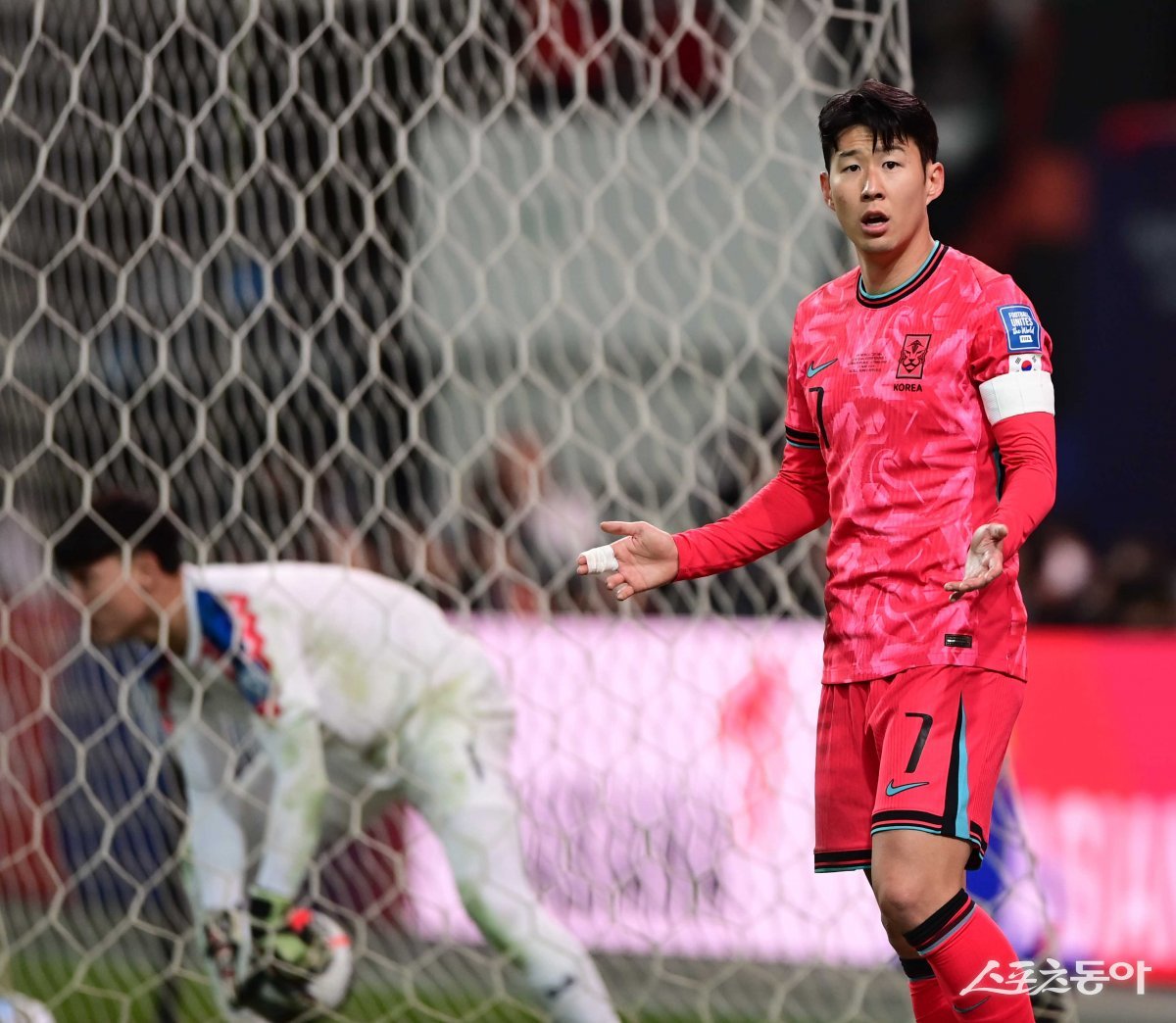 21일 서울월드컵경기장에서 열린 ‘2026 FIFA 북중미 월드컵’ 아시아지역 2차 예선전 한국과 태국의 경기에서 한국 손흥민이 오프사이드로 노골 선언에 아쉬워하고 있다.