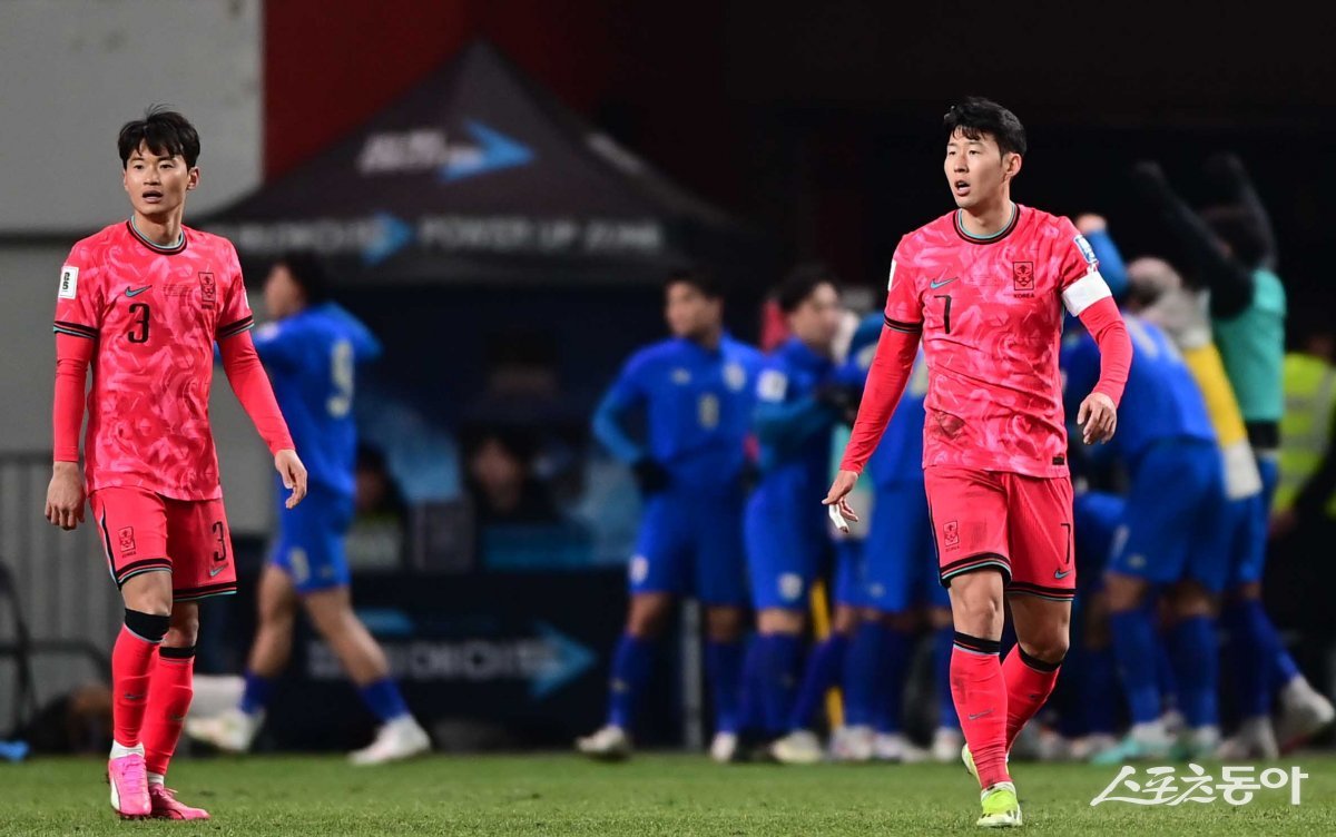 21일 서울월드컵경기장에서 열린 ‘2026 FIFA 북중미 월드컵’ 아시아지역 2차 예선전 한국과 태국의 경기에서 태국에 동점골을 허용한 한국 손흥민이 아쉬워하고 있다. 상암 | 주현희 기자 teth1147@donga.com