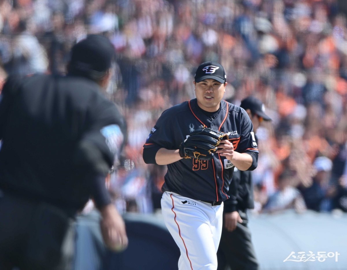 23일 서울 잠실야구장에서 열린 ‘2024 신한 SOL 뱅크 KBO리그’ LG 트윈스와 한화 이글스의 경기에서 선발 투수로 마운드에 오르는 한화 류현진이 미소 짓고 있다.