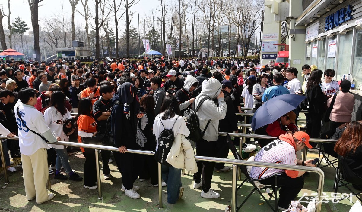 23일 서울 잠실야구장에서 열린 ‘2024 신한 SOL 뱅크 KBO리그’ LG 트윈스와 한화 이글스의 경기에 앞서 관중들이 입장을 기다리고 있다.