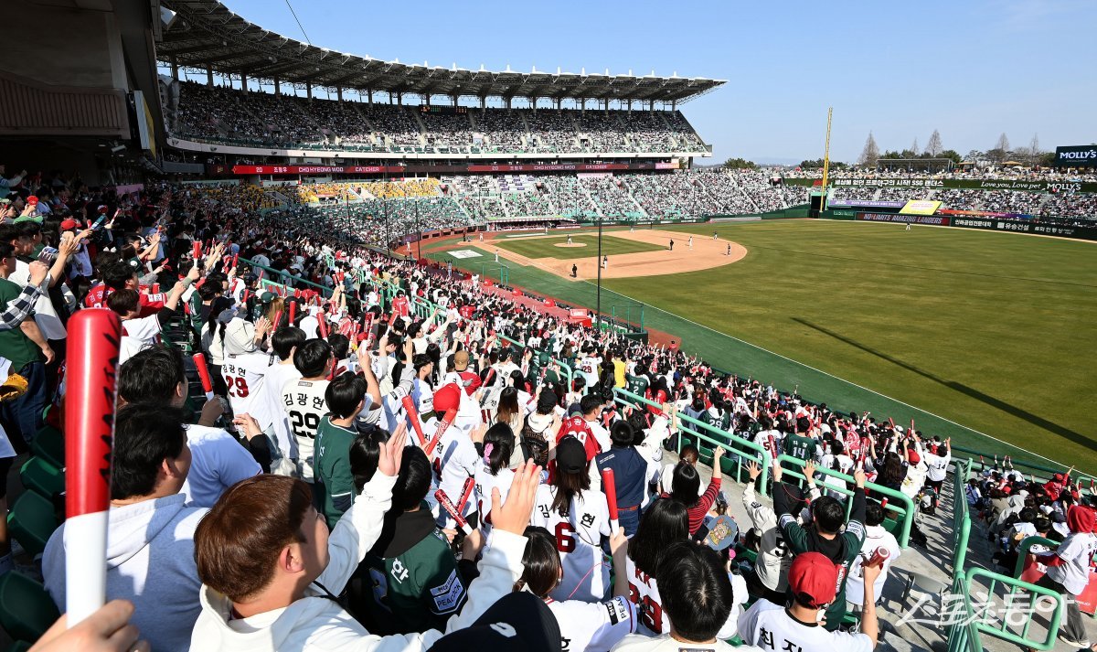24일 인천 SSG 랜더스필드에서 ‘2024 신한 SOL 뱅크 KBO리그’ SSG 랜더스와 롯데 자이언츠의 경기가 열렸다. 경기장을 가득메운 야구팬들이 응원을 펼치는 가운데 이틀 연속 만원 관중을 기록했다.