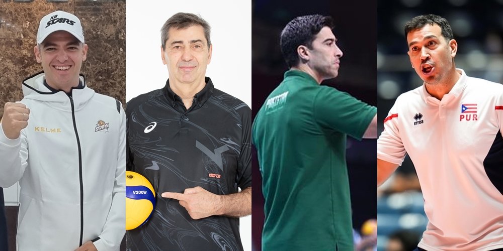 KB손해보험 미겔 리베라 감독, 현대캐피탈 필립 블랑 감독, 이사나예 라미레스 감독, 페르난도 모랄레스 감독(왼쪽부터). 사진제공|KB손해보험 스타즈, 현대캐피탈 스카이워커스, 아시아배구연맹, 국제배구연맹