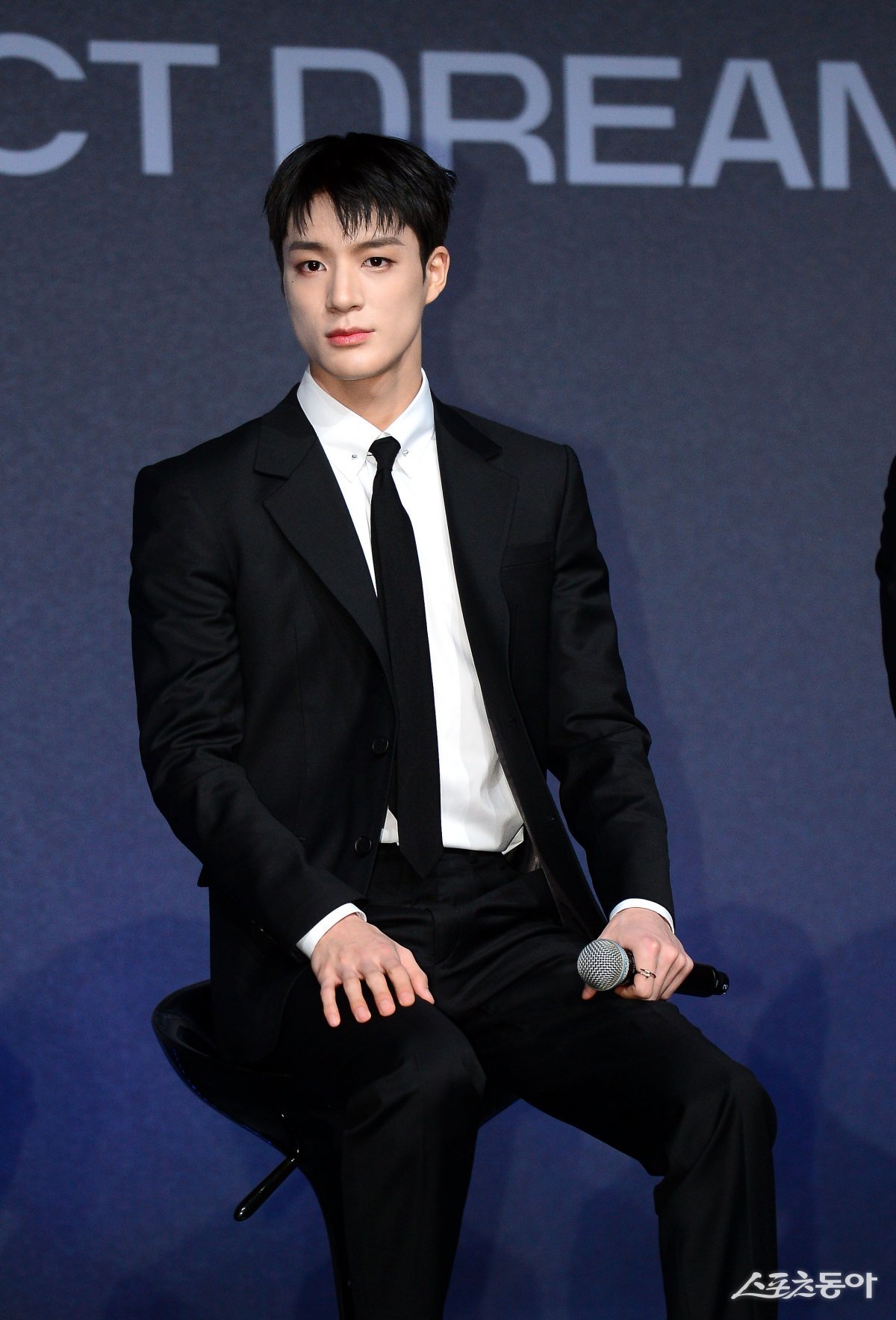 그룹 NCT DREAM(엔시티 드림) 제노가 25일 서울 광진구 그랜드 워커힐 호텔에서 진행된 새 앨범 ‘DREAM( )SCAPE’(드림 이스케이프) 발매 기자간담회에서 취재진을 바라보고 있다.