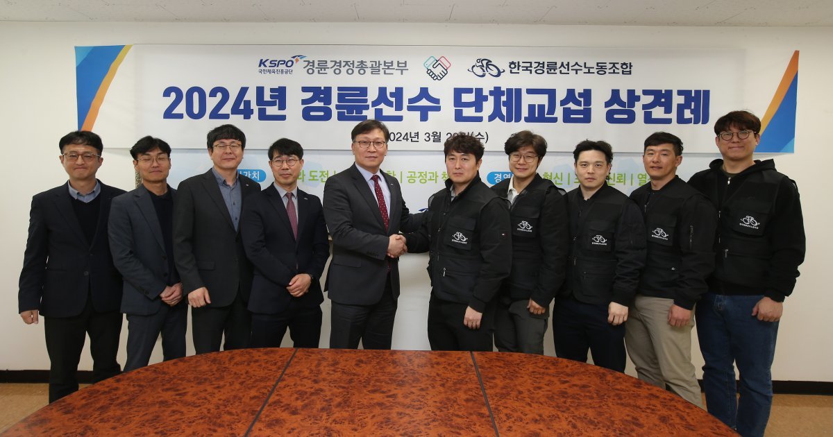 서울올림픽기념국민체육진흥공단(이사장 조현재) 경륜경정총괄본부는 20일 하남 미사리 경정장 회의실에서 한국경륜선수노동조합과 2024년 단체교섭 상견례를 실시했다.