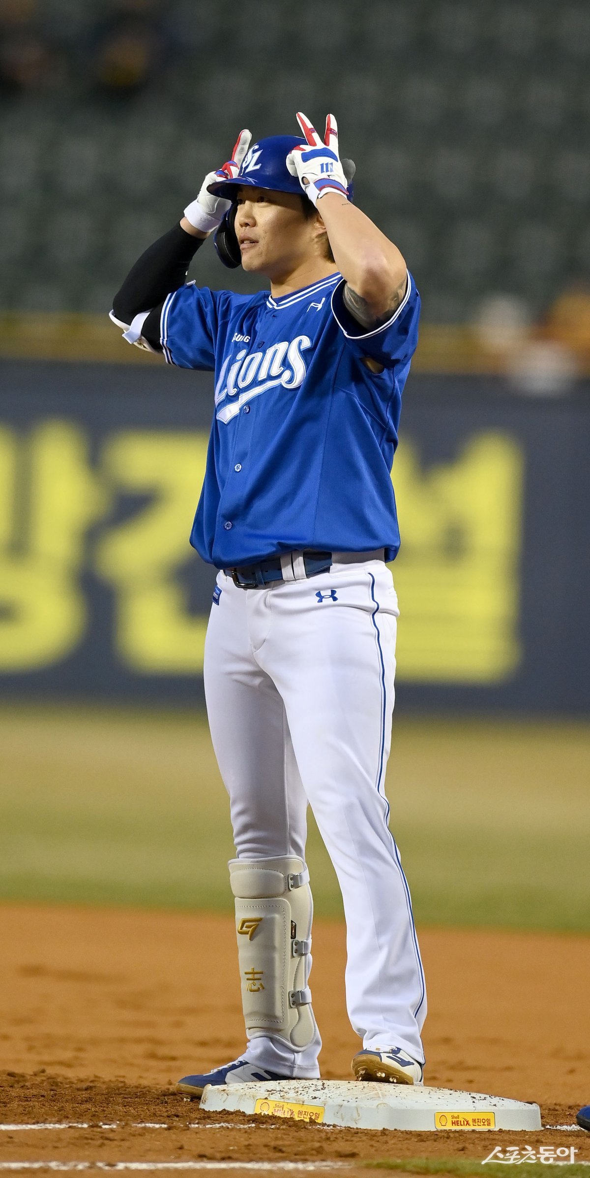 26일 서울 잠실야구장에서 ‘2024 신한은행 SOL뱅크 KBO리그’ 삼성 라이온즈와 LG 트윈스 경기가 열렸다. 2회초 1사 삼성 류지혁이 우전 안타를 치고 1루에서 기뻐하고 있다.