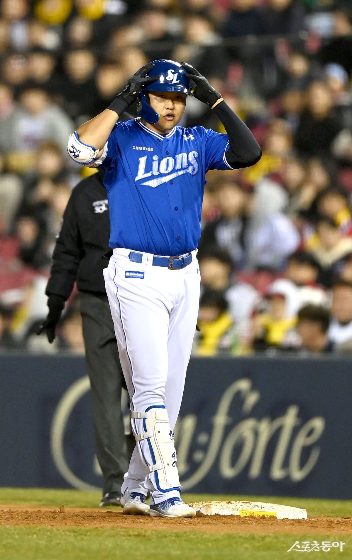 26일 서울 잠실야구장에서 ‘2024 신한은행 SOL뱅크 KBO리그’ 삼성 라이온즈와 LG 트윈스 경기가 열렸다. 6회초 2사 1루 삼성 오재일이 우전 안타를 치고 1루에서 기뻐하고 있다.