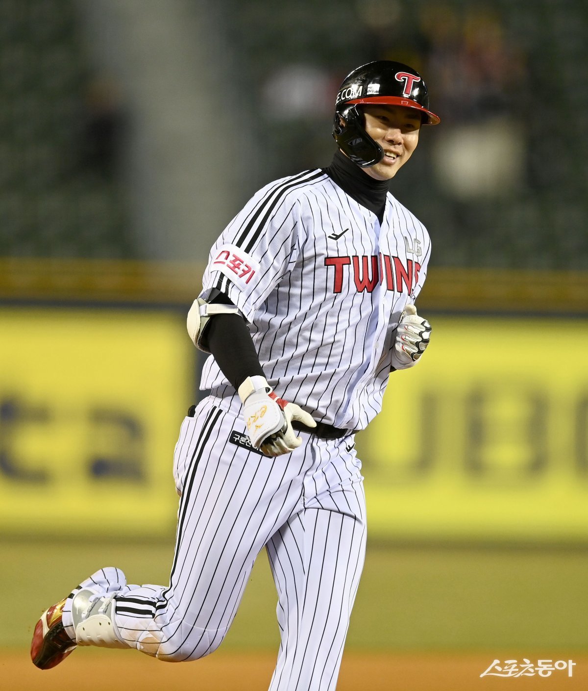 26일 서울 잠실야구장에서 ‘2024 신한은행 SOL뱅크 KBO리그’ 삼성 라이온즈와 LG 트윈스 경기가 열렸다. 8회말 무사 LG 홍창기가 우월 동점 솔로 홈런을 날린 후 그라운드를 돌고 있다.