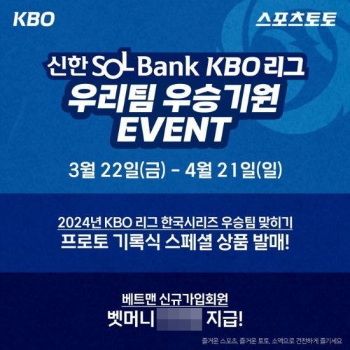 아울러 최근 스포츠토토에선 국내프로야구(KBO리그) 10개 구단 중 한국시리즈 최종전 승리(우승)팀을 맞히는 ‘KBO 스페셜 기록식 26회차 X게임’을 새롭게 출시했다.