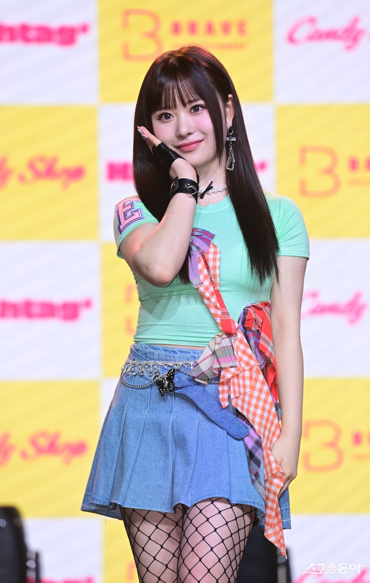 그룹 캔디샵 유이나가 27일 서울 강남구 청담동 일지아트홀에서 열린 미니앨범 1집 ‘Hashtag#(해시태그#)’ 발매 프레스 쇼케이스에서 포즈를 취하고 있다.