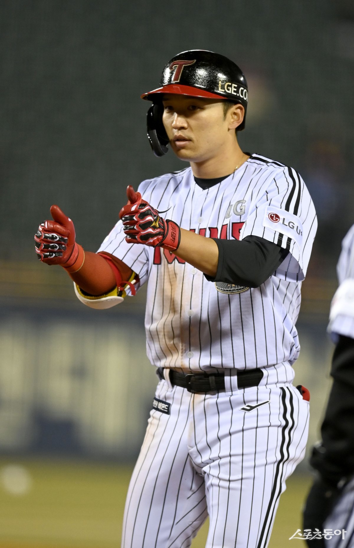 27일 서울 잠실야구장에서 ‘2024 신한은행 SOL뱅크 KBO리그’ 삼성 라이온즈와 LG 트윈스 경기가 열렸다. 5회말 2사 LG 박해민이 우전 안타를 치고 1루에서 기뻐하고 있다.