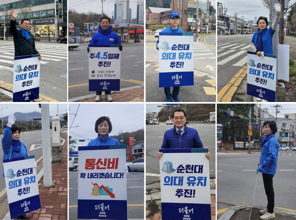 민주당 순천·광양·곡성·구례 시도의원 원팀 가동 출근길 홍보전
