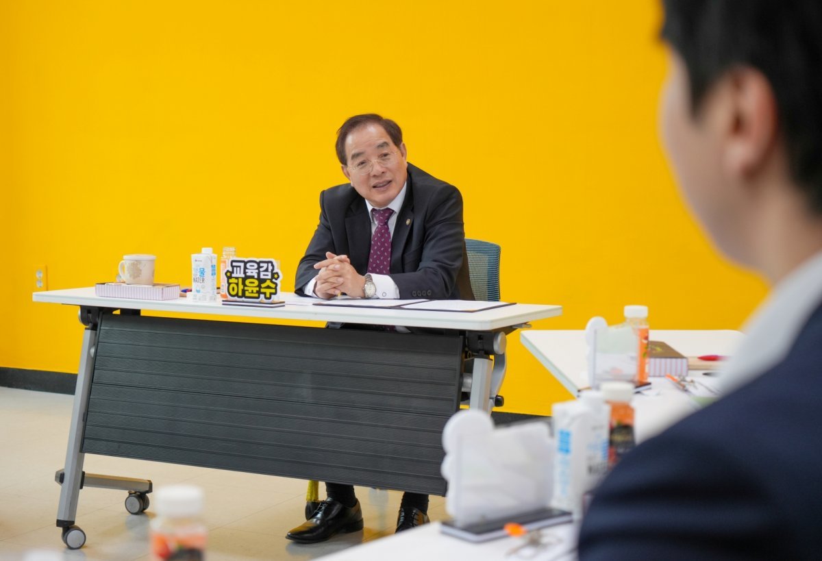 이날 행사는 하 교육감이 참가자들의 첫 출발을 축하하고 이들의 고충과 바라는 점을 직접 들으며 더 나은 조직문화를 만들기 위해 마련한 자리다.