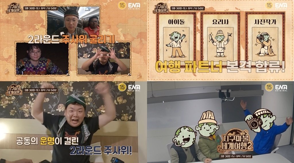 3월 30일 방송되는 ENA ‘지구마불 세계여행2’(이하 ‘지구마불2’) 4회에서는 스리랑카에 간 빠니보틀, 오만에 간 원지, 인도네시아에 간 곽튜브의 1라운드 여행 후반전과 2라운드 여행 주사위 결과가 공개된다. 이와 함께 2라운드에서 전격 합류하는 여행 파트너의 정체도 밝혀진다고 해 기대를 더한다.