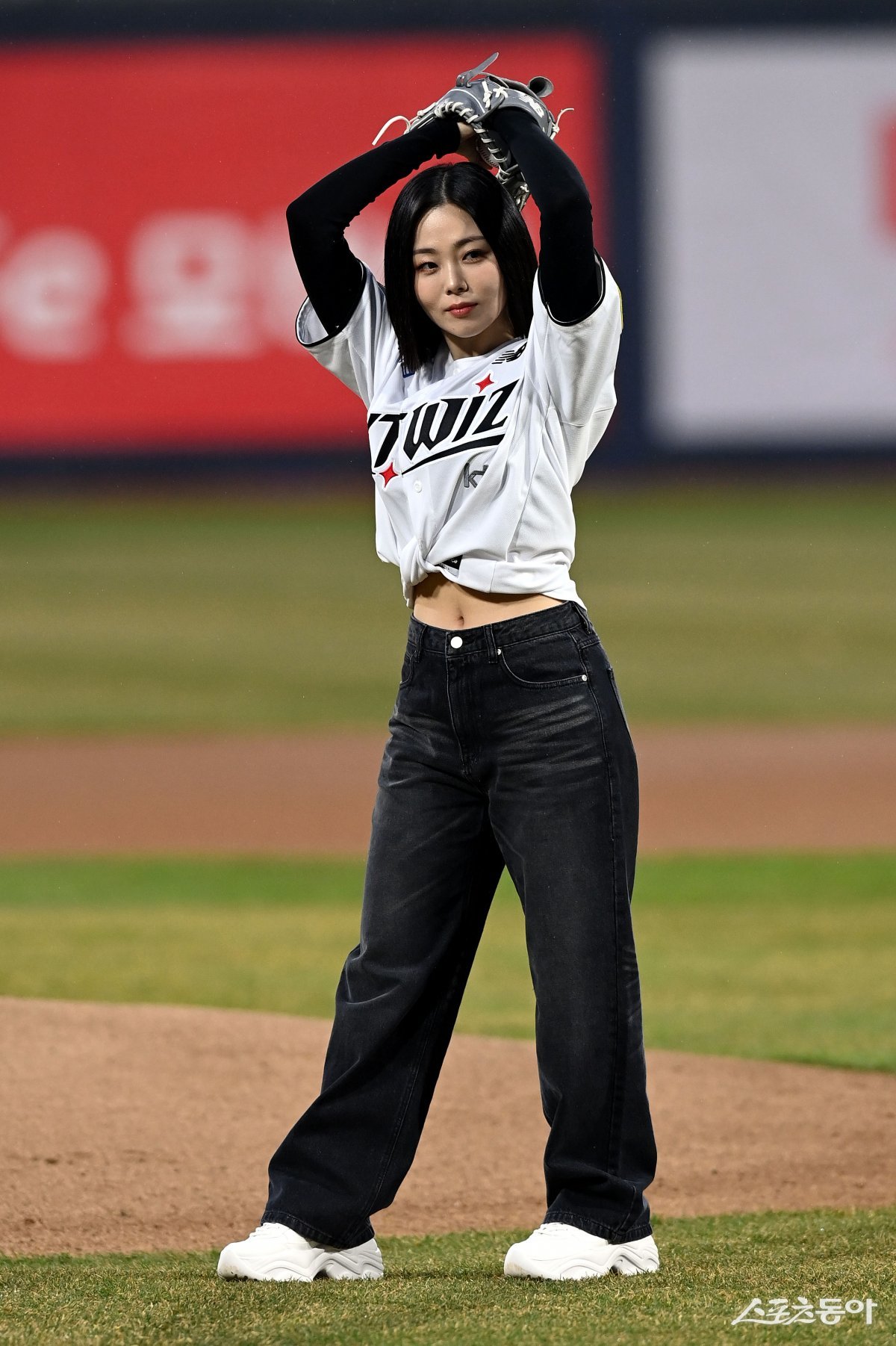 28일 경기도 수원 KT위즈파크에서 ‘2024 신한 SOL 뱅크 KBO리그’ KT 위즈와 두산 베어스의 경기가 열렸다. 경기에 앞서 가수 박혜원이 시구를 준비하고 있다.