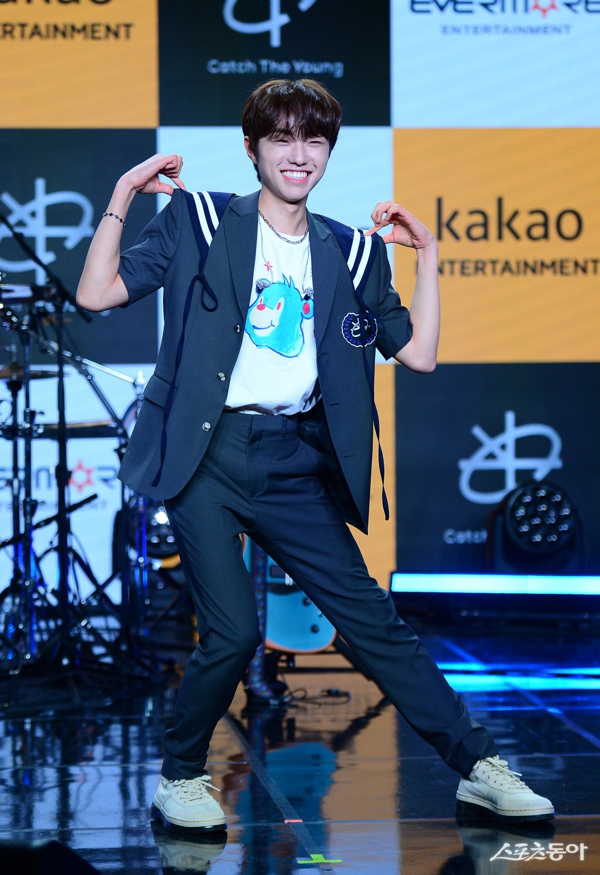 그룹 ‘캐치더영(Catch The Young)’ 준용이 3일 서울 강남구 일지아트홀에서 열린 두 번째 미니앨범 ‘프래그먼츠 오브 오디세이(Fragments of Odyssey)’ 발매 쇼케이스에서 포토타임을 갖고 있다.