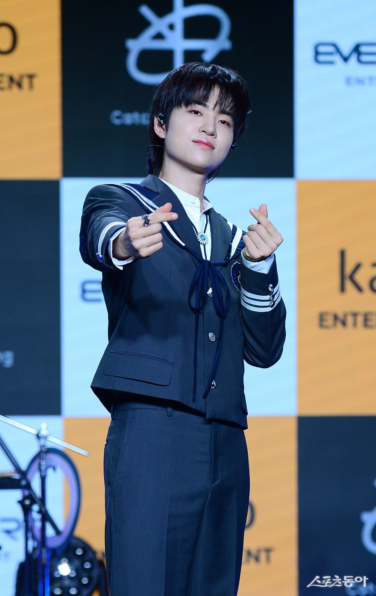 그룹 ‘캐치더영(Catch The Young)’ 산이가 3일 서울 강남구 일지아트홀에서 열린 두 번째 미니앨범 ‘프래그먼츠 오브 오디세이(Fragments of Odyssey)’ 발매 쇼케이스에서 포토타임을 갖고 있다.
