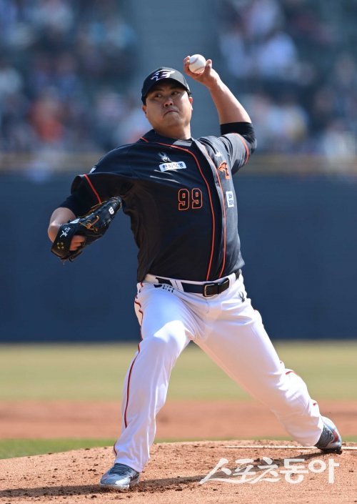 류현진은 KBO리그 복귀 후 아직 첫 승을 신고하지 못하고 있다. 2경기에서 1패, 평균자책점(ERA) 3.72다. 5일 고척돔 데뷔전에서 승리를 거두면, KBO리그 통산 99승째를 챙기게 된다.
